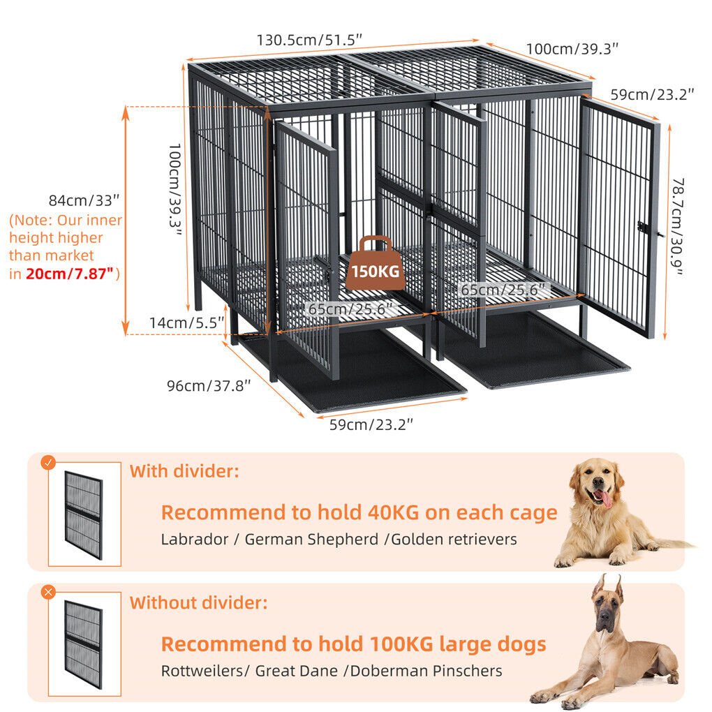 - Enhanced Durability: Constructed with upgraded 20-gauge steel and reinforced by 5cm diameter steel tubes, our XXX-Large Dog Cage is designed to withstand the strength of powerful and aggressive dogs, ensuring long-lasting use and security.