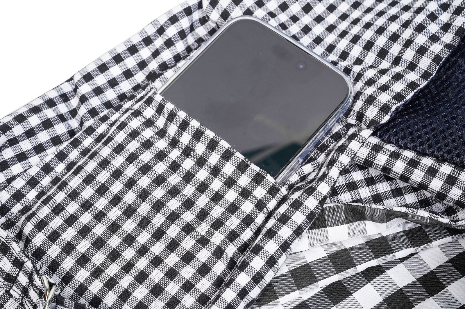 - Soft & Breathable Materials: The outer layer is crafted from comfortable pure cotton fabric in a classic checkered pattern, while the inner lining is a smooth polyester. The shoulder strap features a breathable mesh panel to reduce stuffiness and enhance comfort for the wearer.