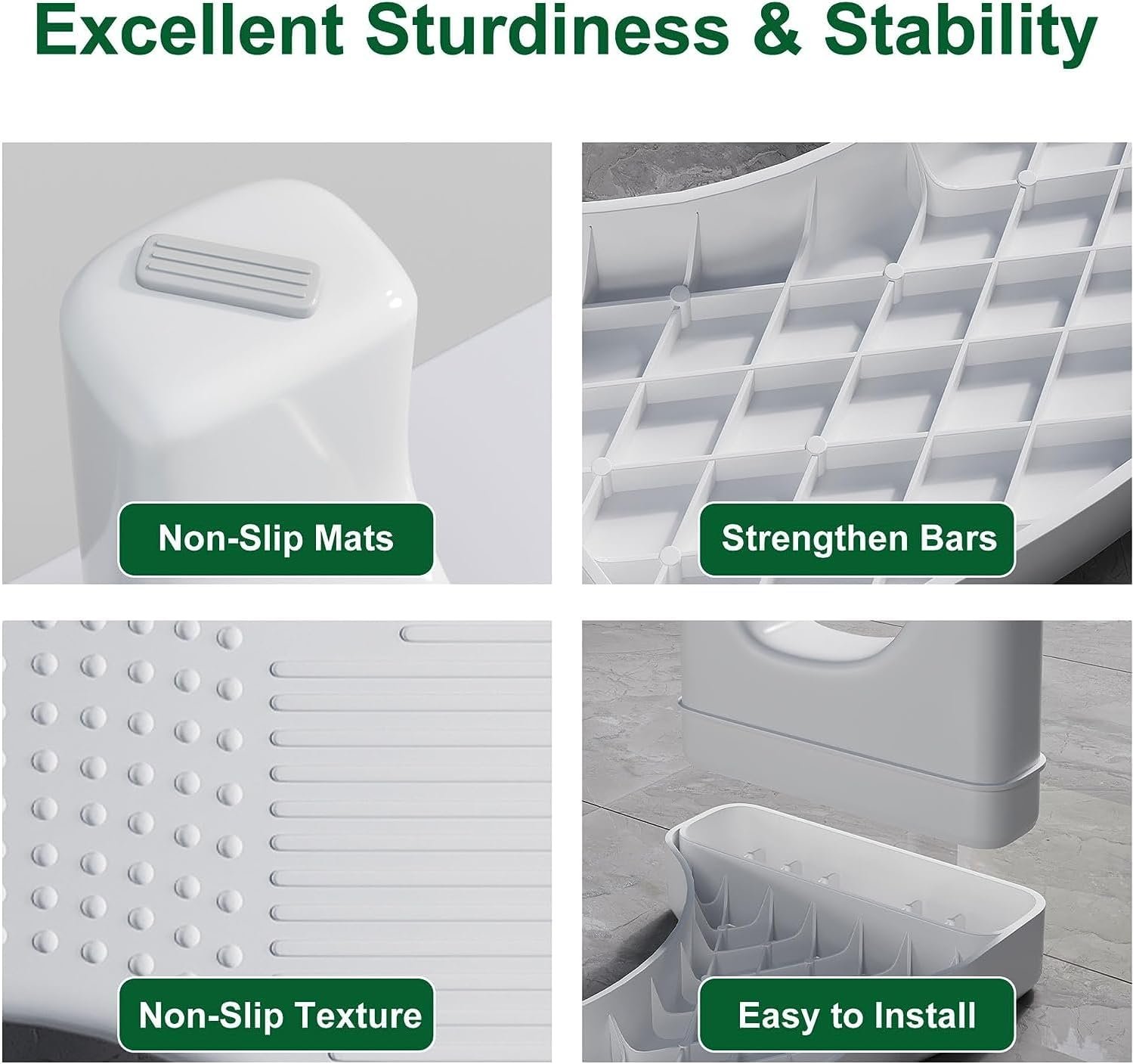 - DUAL NON-SLIP SAFETY FEATURES: Designed with a textured anti-slip surface and wide rubber feet for maximum stability on any bathroom floor. Feel secure with every use—no shifting, tipping, or slipping.