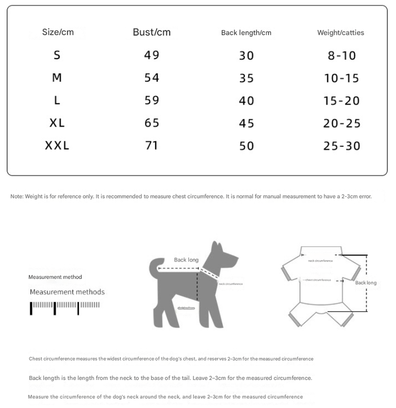 • Sleeveless Design: The “two-legged” sleeveless cut ensures great freedom of movement for your dog’s front legs, providing comfort without restriction. Designed with appropriate shoulder width to prevent tightness.