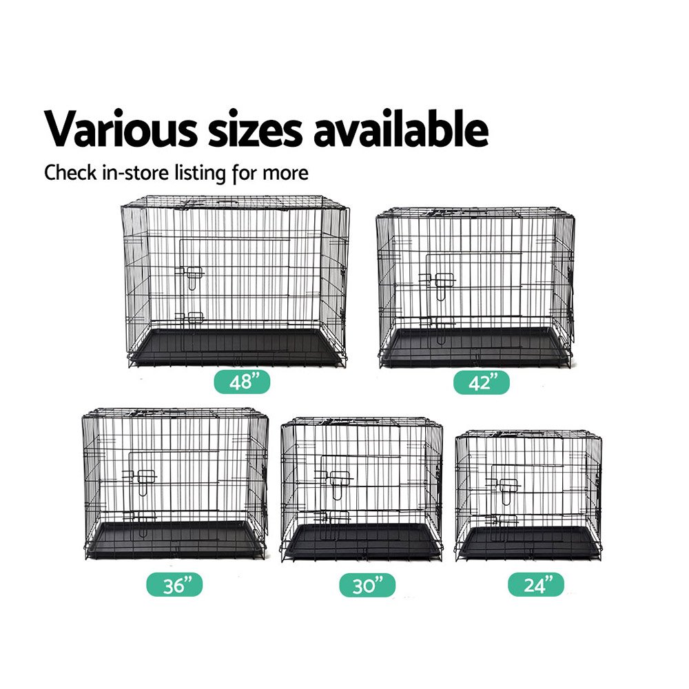 Featuring a foldable design with triple access doors, this dog cage offers maximum convenience and is extremely safe for containing your pets. It’s metal constructed with a powder coated finish enhancing durability and is also rust resistant. Easy to setup, store, transport and clean, an absolute hassle free purchase! Great for securely keeping your pets contained, a must have for every pet owner.
