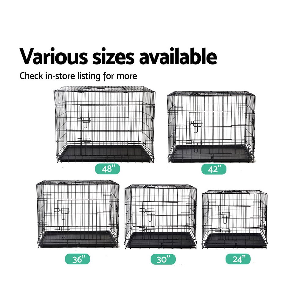 Featuring a foldable design with triple access doors, this dog cage offers maximum convenience and is extremely safe for containing your pets. It’s metal constructed with a powder coated finish enhancing durability and is also rust resistant. Easy to setup, store, transport and clean. Great for securely keeping your pets contained, a must have for every pet owner.