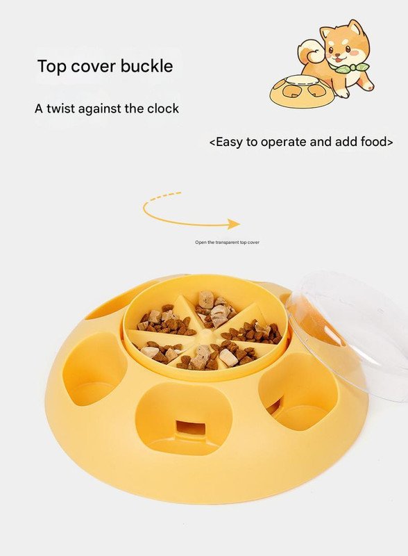 - Interactive Puzzle Feeder: Encourages pets to press the central lid to dispense food into slow feeder compartments.