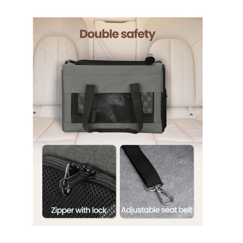- Double Safety for Travel: Equipped with interlocking zippers that can be locked and an adjustable strap to secure the carrier with a car seat belt.