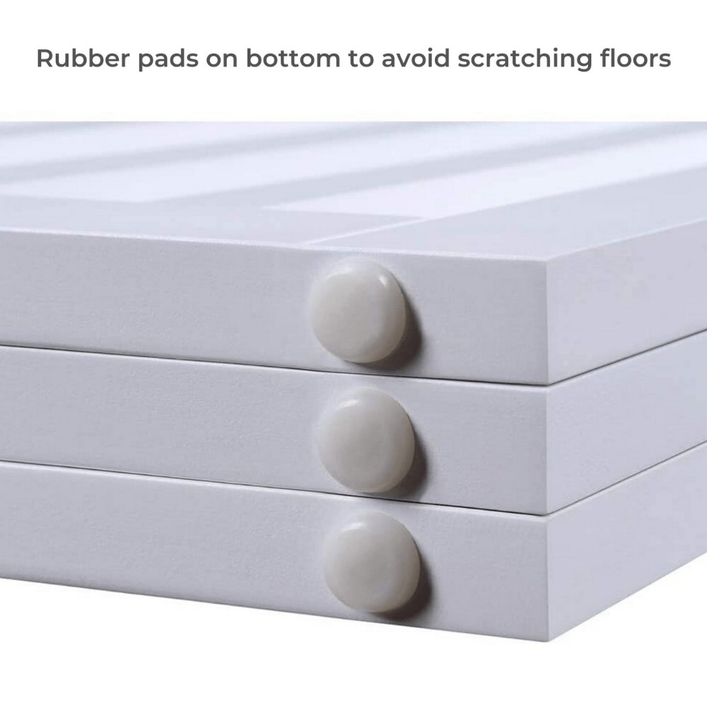 - Skid-resistant pads help keep the gate from sliding across tile and wood floors