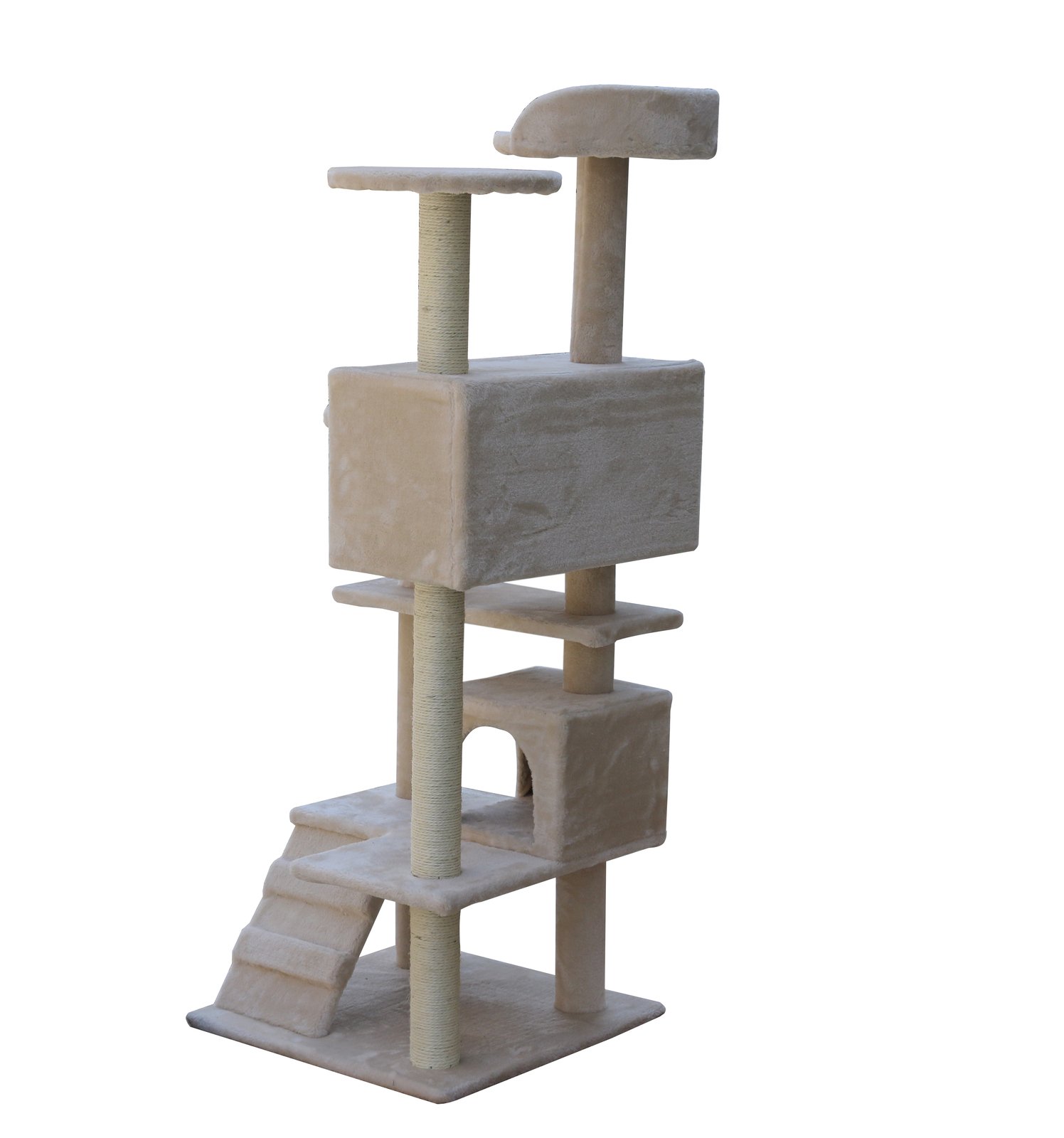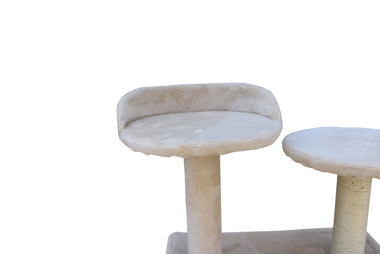 The cat tree comes with 2 bed cubes and a few platforms to provide some shelter. The tubes are wrapped with sisal ropes for your pets to scratch and play with. The sturdy base prevents any swaying so it is safe on any flat surface so you do not have to worry about injury to your cat. The stylish cat tree will perfectly blend in with your decor.​