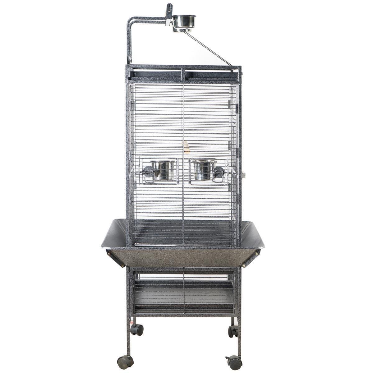 Our cage is made from goodquality wrought iron andthe durable metal cage uses a non-toxic powder-coated finish for total eco-friendliness to man and bird.Taking care of birdis made easywith one large access door and two side doors to reach inside thefood and water bowls and take them out for refillingor cleaning. Cleaning is hassle-free with the slide-out top and bottom tray that can also be removed.